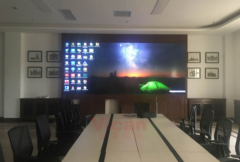 湖南某旅游局的這套會議大屏由維康國際提供,采用3x4拼接、55寸1.7mm液晶拼接屏,在中式辦公空間里散發(fā)內(nèi)斂氣質(zhì)。