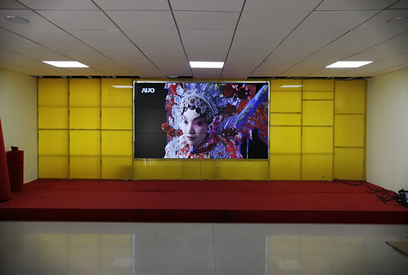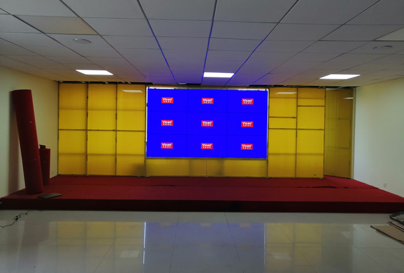 該案例中,維康國際為榮成赤山集團物業(yè)服務(wù)公司提供一套會議室大屏,采用3x3拼接,55寸液晶拼接屏,大屏雙邊拼縫為3.5mm,大屏幕高清顯示,清晰亮麗,如上圖所示。