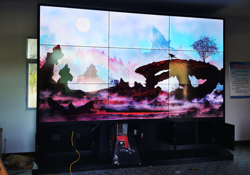 維康國際為貴州藍(lán)田村養(yǎng)殖場提供的這套顯示屏采用3x3拼接、55寸3.5mm液晶拼接屏,主要用來展覽展示及會議使用,如上圖所示,大屏幕顯示清晰亮麗,具有很好的畫面一體化顯示效果。