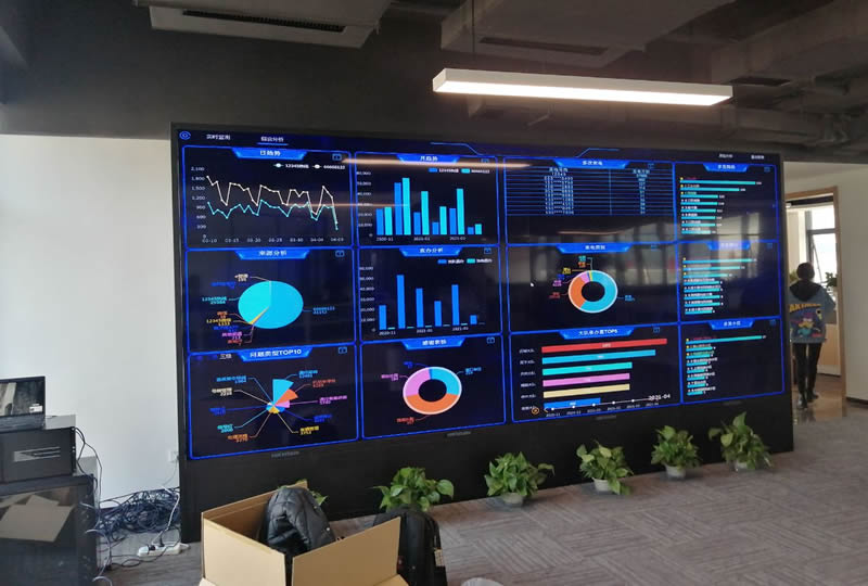 本案例中,維康國際為廣州市白云區(qū)某服裝電商公司提供一套大數(shù)據(jù)顯示屏,由3x4拼接、55寸超窄邊液晶拼接屏組成,采用點對點大數(shù)據(jù)顯示解決方案,讓大屏幕的分辨率更高、顯示更清晰細(xì)膩。