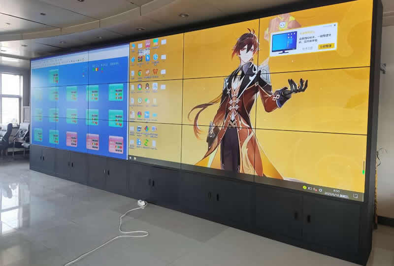 本案例中,維康國際為保定市某電力局提供一套指揮中心大屏,采用3行6列、55寸液晶拼接屏,雙邊拼縫為3.5mm,大屏幕顯示清晰,色彩柔和,支持24小時長時間不間斷的運行工作。
