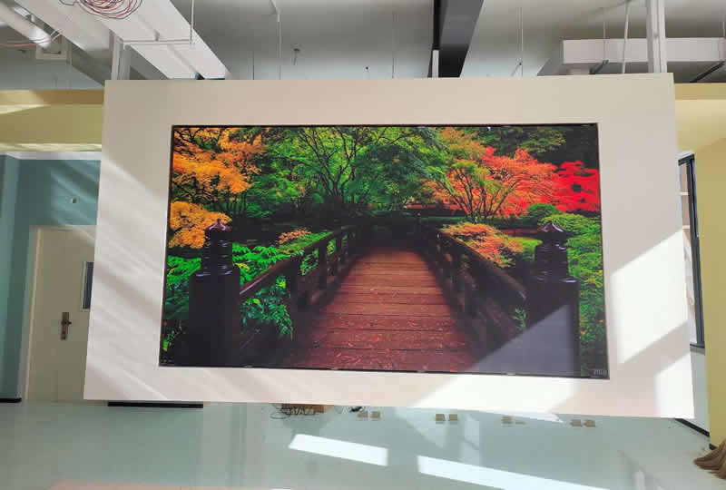 本案例中,維康國際為山西晉中某企業(yè)提供一套展廳LED顯示屏,采用P1.25的COB顯示屏,高清顯示,畫質(zhì)清晰,懸掛式安裝,具有很好的視覺體驗效果。