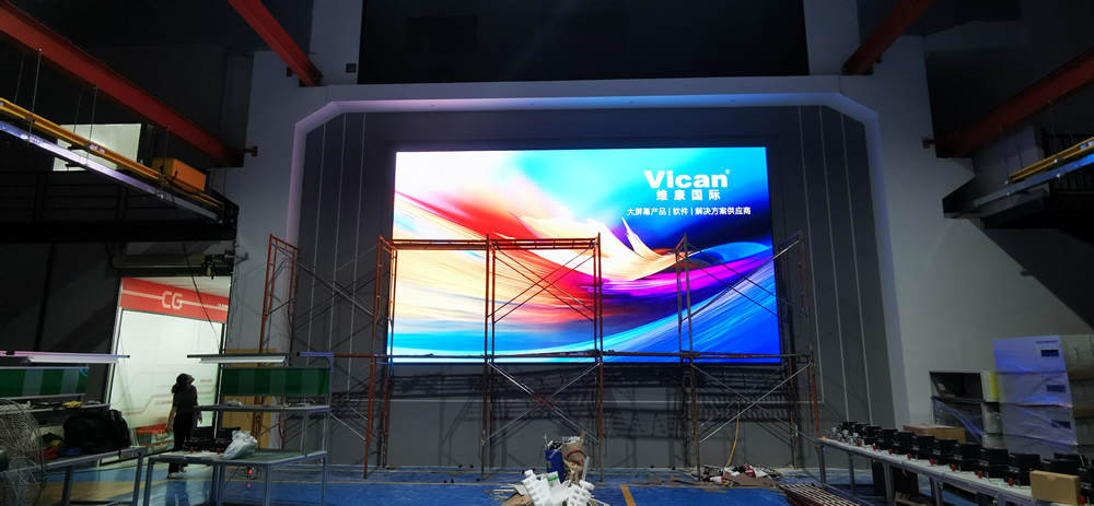 本案例中,維康國際為東莞市某工廠提供一套車間LED大屏,30多平方米,大屏幕顯示清晰,超大尺寸,視覺效果震撼。