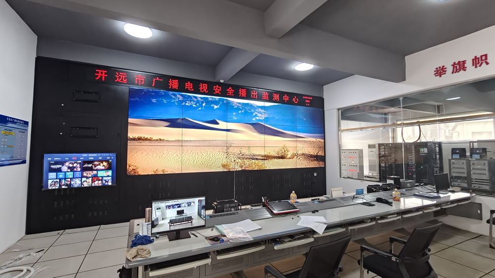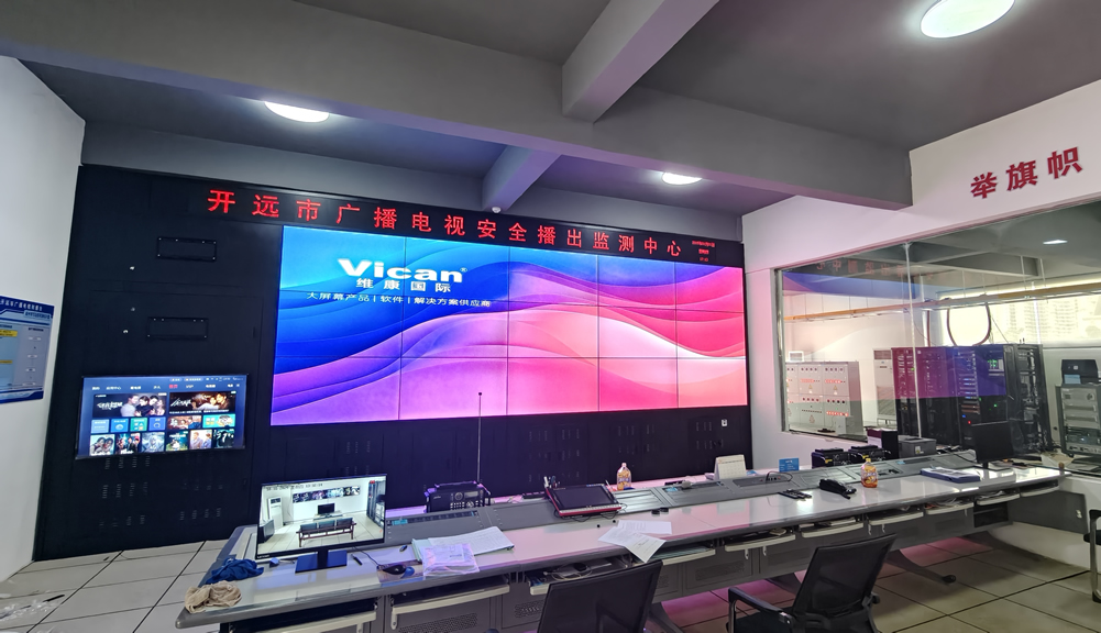本案例中,維康國際為開遠市某電視臺提供一套指揮中心大屏,采用3x5拼接,55寸0.88mm超窄邊液晶拼接屏,大屏幕顯示清晰細膩,色彩柔和,視覺體驗效果好。