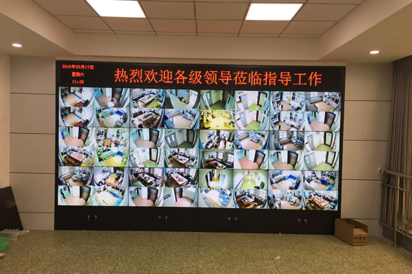 聊城市某人民醫(yī)院采用了一套維康國際提供的55寸液晶拼接屏,屏體為LG原裝面板,3.5mm拼縫,采用機柜式安裝,主要用做監(jiān)控顯示使用。