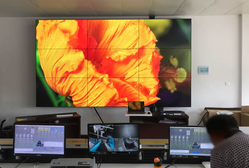 本案例,是維康國際為長沙牛力建設公司提供的一套監(jiān)控拼接屏,采用3x3拼接、55寸液晶拼接屏,屏體采用三星1.7mm工業(yè)級液晶面板,支持全天不間斷的長時間工作模式。