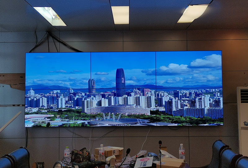 近日,維康國(guó)際為臺(tái)兒莊水務(wù)局的會(huì)議室安裝了一套大屏顯示系統(tǒng),由2x3、55寸1.7mm液晶拼接屏組成,主要用來(lái)做會(huì)議信息顯示使用。