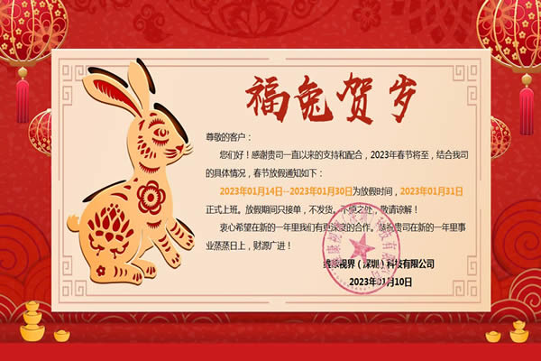 新年將至,預(yù)祝大家新年快樂(lè)!感覺(jué)大家一直以來(lái)的支持與認(rèn)可。根據(jù)相關(guān)規(guī)定,結(jié)合我司經(jīng)營(yíng)情況,2023年春節(jié)放假公告如下: