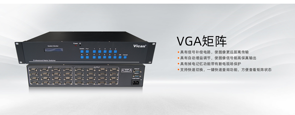 支持快速切換操作,支持一鍵快速查詢功能,方便查看矩陣的切換狀態(tài),具有掉電記憶功能帶有斷電現(xiàn)場(chǎng)保護(hù);
