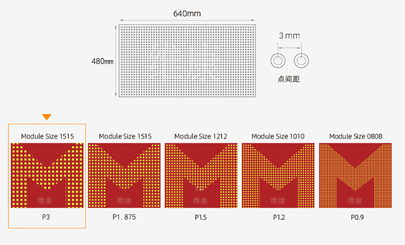 采用行業(yè)壓鑄鋁箱體,設(shè)計(jì)精度高,平整度高。箱體尺寸為640×480/(mm),模組尺寸寬320×高160mm,箱體重量7kg,亮度600~800cd/m2可調(diào),像素點(diǎn)間距3mm。