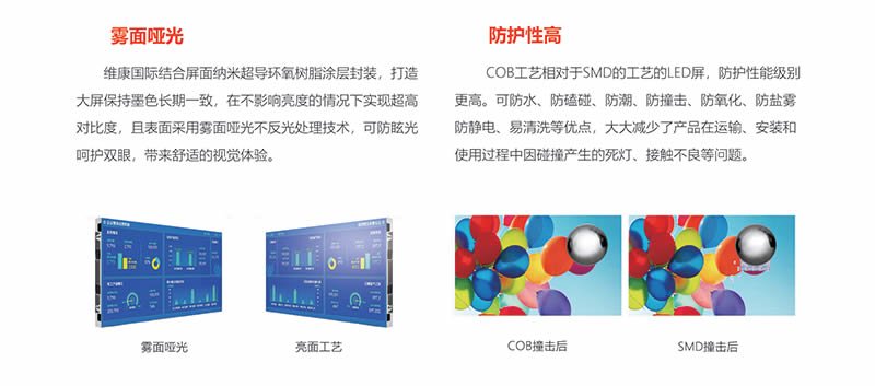 COB集成封裝顯示屏采用面板封裝技術(shù),沒有燈腳裸露問題,具有防潮、防塵、防靜電等功能。