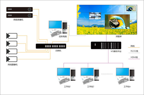 我們在前期設(shè)計方案時還要考慮到一系列的問題,包括前端的監(jiān)控攝像機、傳輸、解碼平臺、大屏拼接數(shù)量等,只有綜合所有的設(shè)備發(fā)揮各自的功能才可以實現(xiàn)用戶想要的顯示效果。